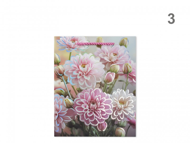 CQ07397 Ajándéktasak virágos glitteres közép 18x10x23cm 4f