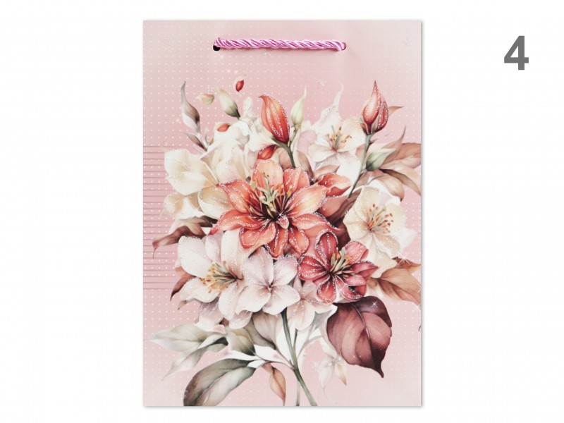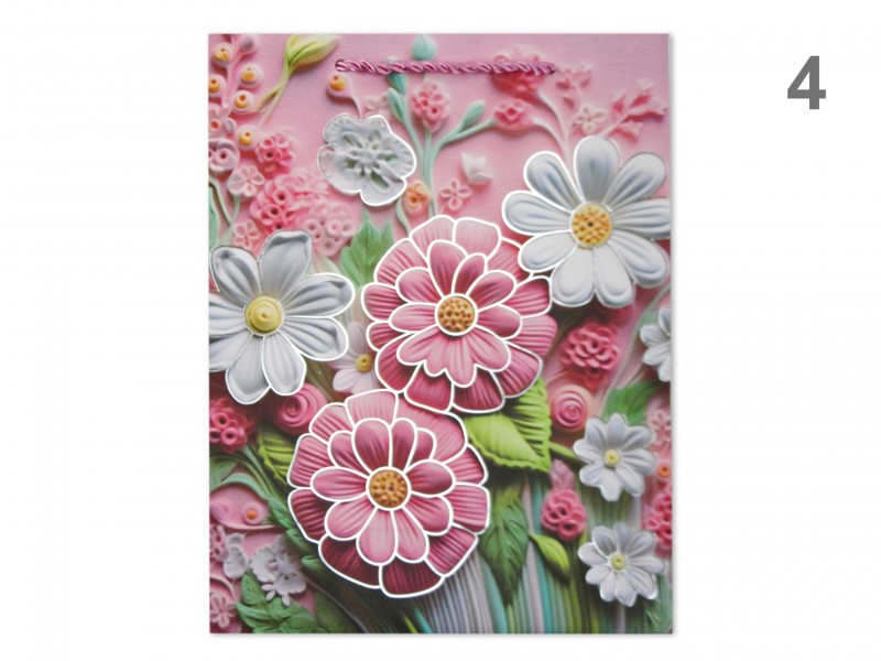 CQ07444 Ajándéktasak virágos glitteres óriás 31x12x40cm 4f