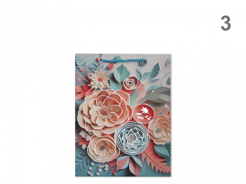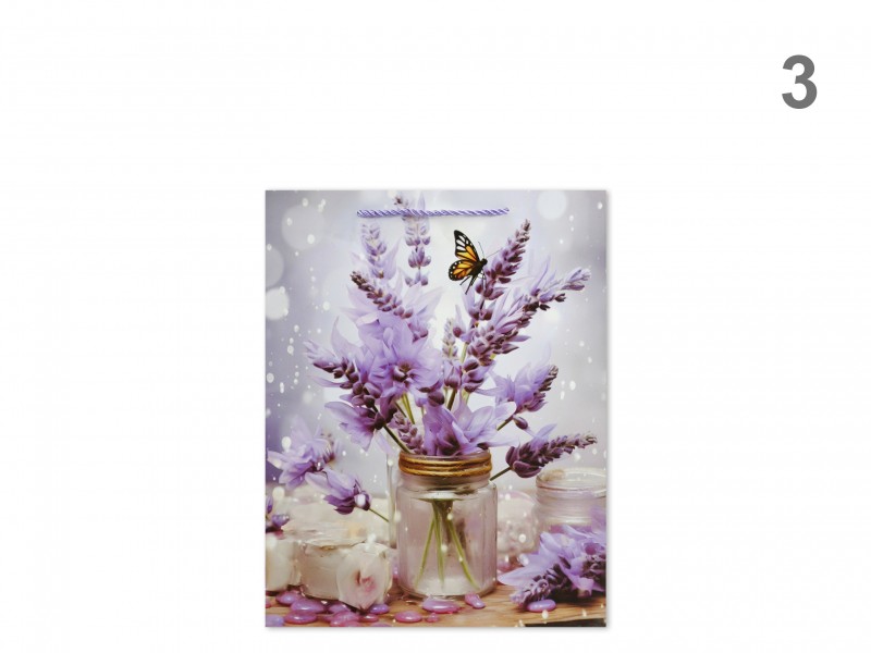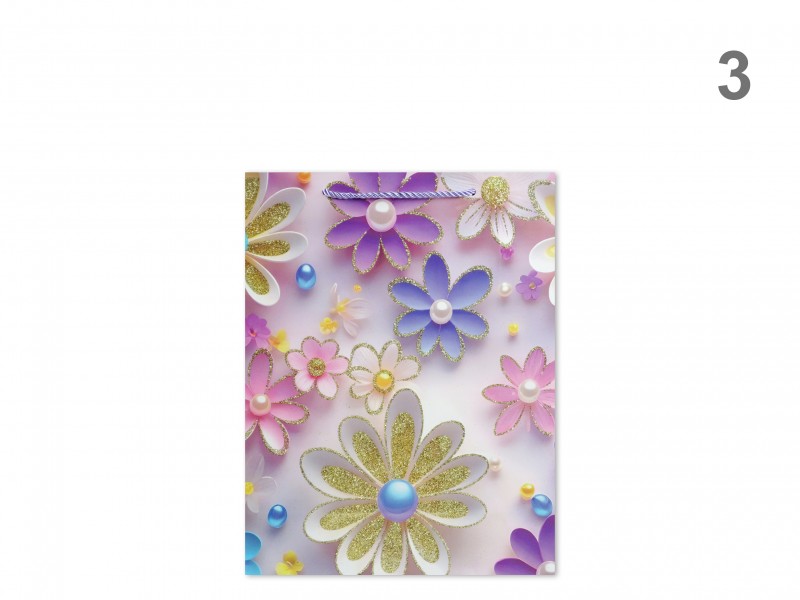 CQ05024 Ajándéktasak arany pillangós virágos közép 18x10x23cm 4f Címke: ajándéktasak közép ajándéktasak