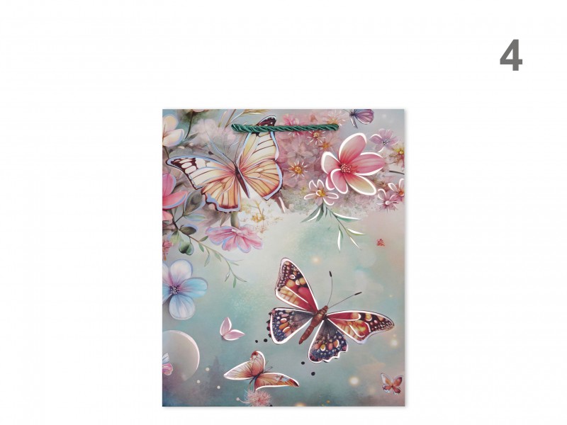 CQ07397 Ajándéktasak virágos glitteres közép 18x10x23cm 4f Címke: ajándéktasak közép ajándéktasak