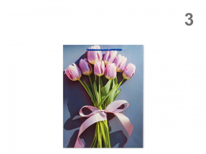CQ07459 Ajándéktasak virágos glitteres közép 18x8,5x24cm 4f Címke: ajándéktasak közép ajándéktasak
