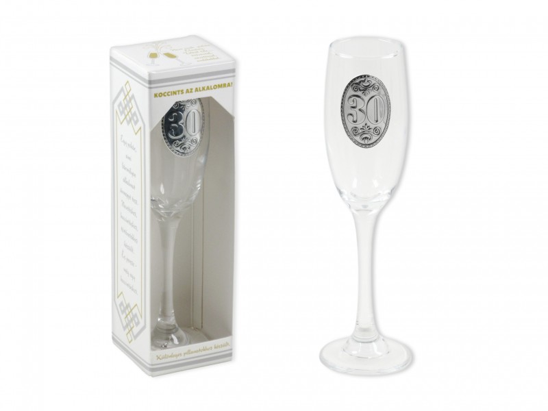 CQ07657 Pezsgős pohár fémcimkés 40 évszámos Címke: születésnapi ajándék ital kiegészítők ajándéktárgyak pohár üveg áru