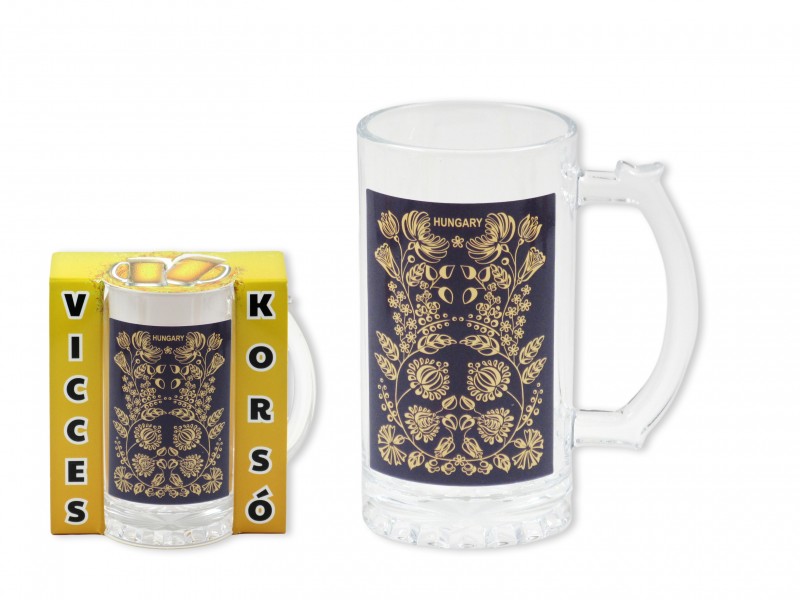 CQ07804 Söröskorsó Hungary kalocsai 400ml Címke: ital kiegészítők ajándéktárgyak magyaros ajándék pohár üveg áru